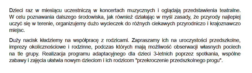W ramach realizowanego programu opieki psychologiczno-pedagogicznej nad małym dzieckiem, przedszkole jest pod stałą opieką psychologa.