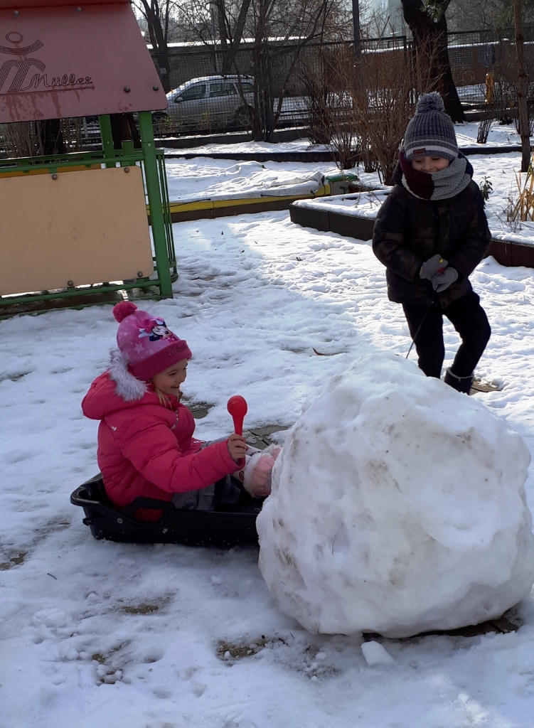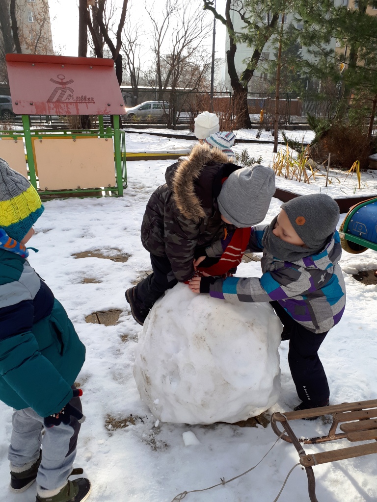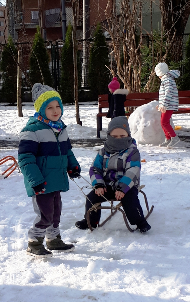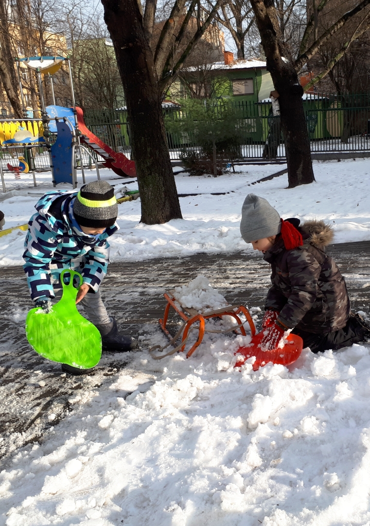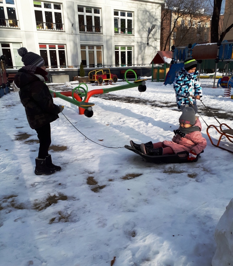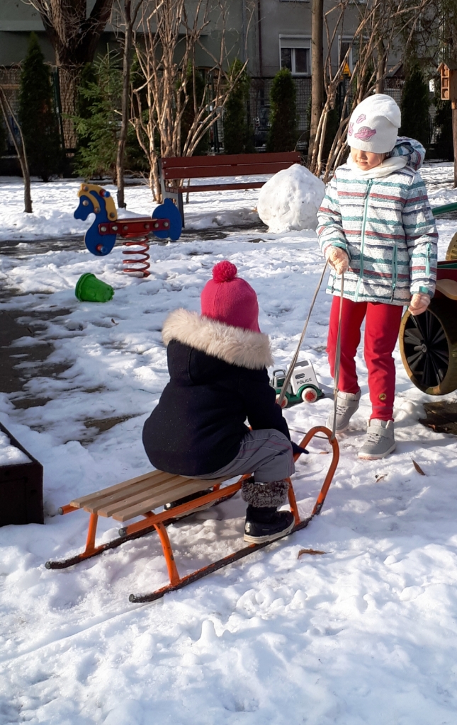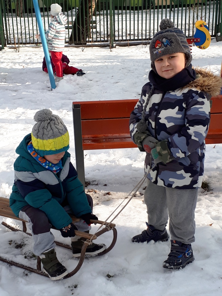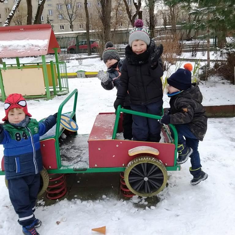 Pierwszy śnieg w nowym roku sprawił wszystkim przedszkolakom wiele radości.