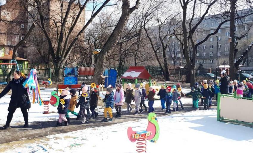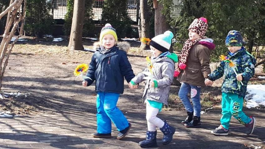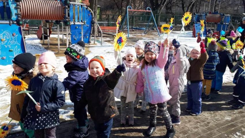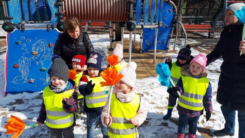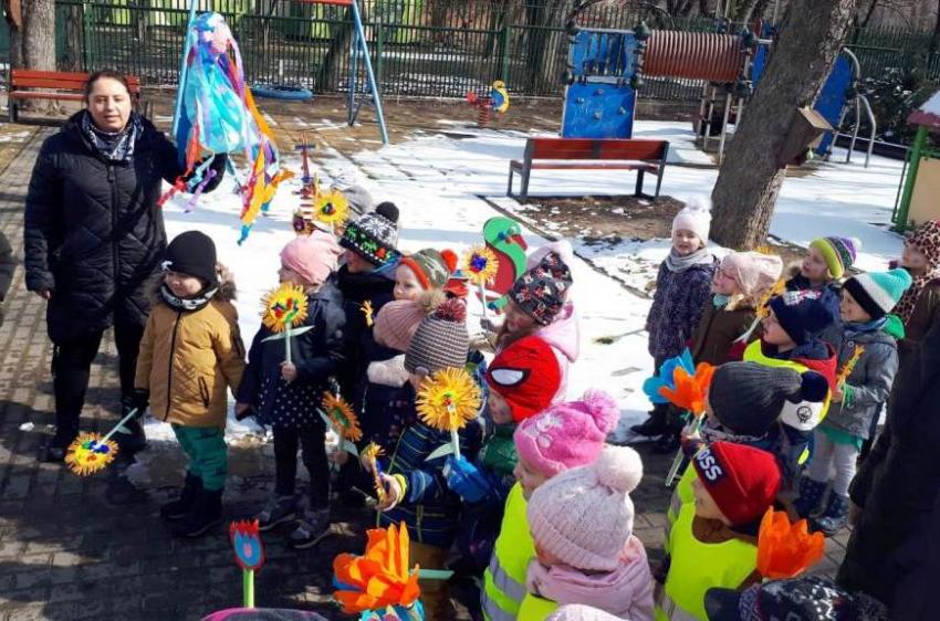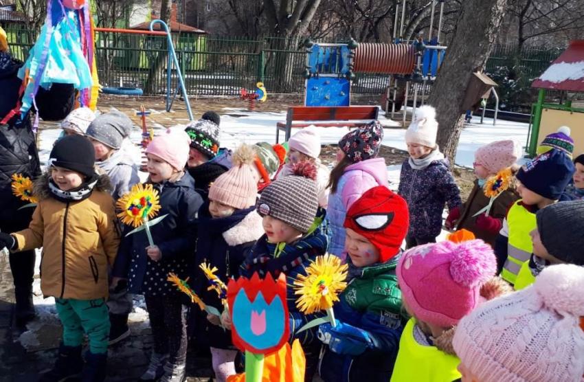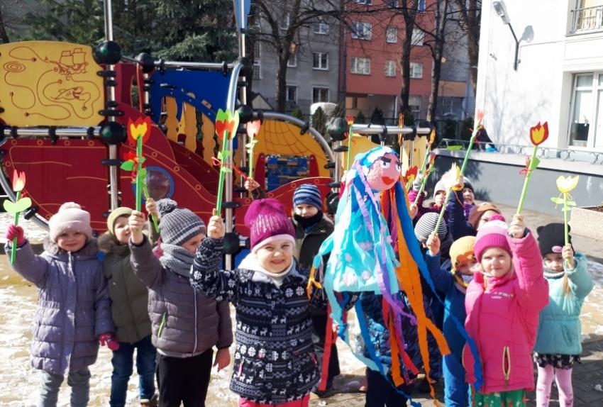 Dnia 19.03.2021 r. odbyła się zabawa na ogrodzie przedszkolnym z udziałem wszystkich dzieci pod hasłem ,,Żegnaj zimo, witaj wiosno" .