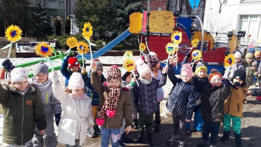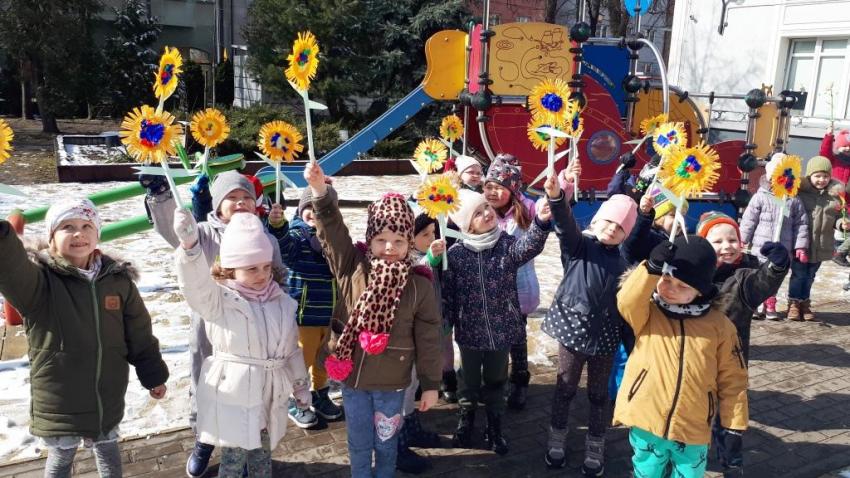 Dziwnym zbiegiem okoliczności na błękitnym niebie pojawiło się słońce, rozweselając buzie wszystkich przedszkolaków.