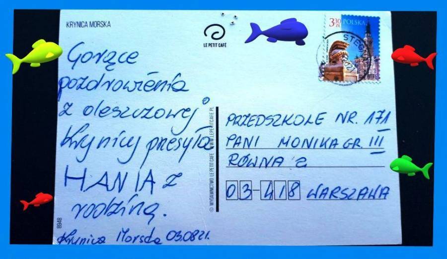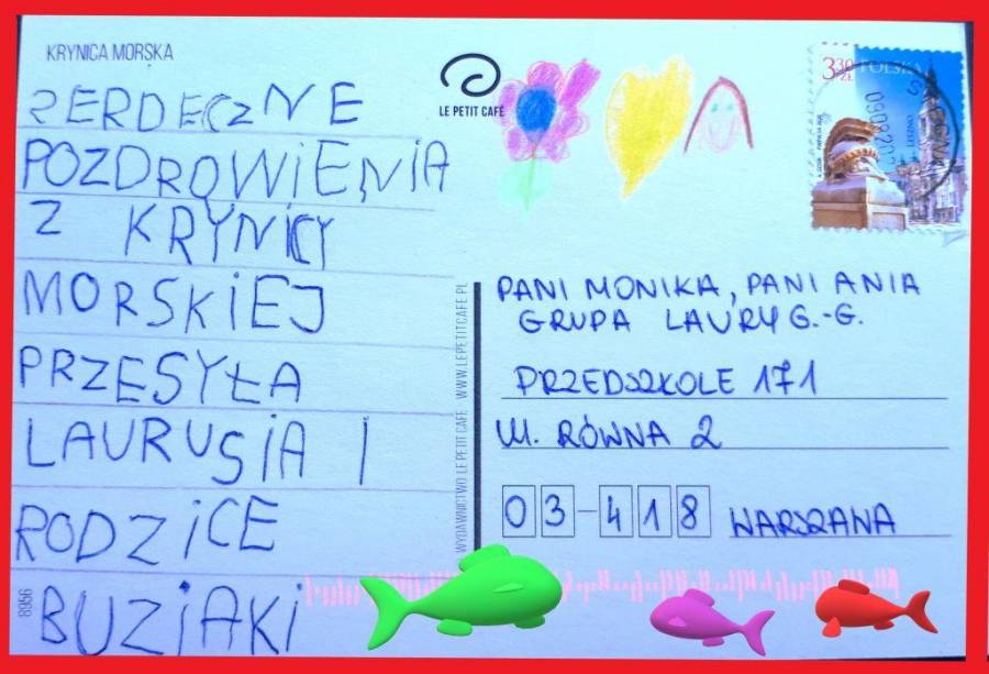 Dzieci dwiedziły wiele ciekawych miejsc w Polsce. Otrzymaliśmy z tych miejsc pocztówki, co sprawiło wszystkim pracownikom przedszkola dużo przyjemnośći.