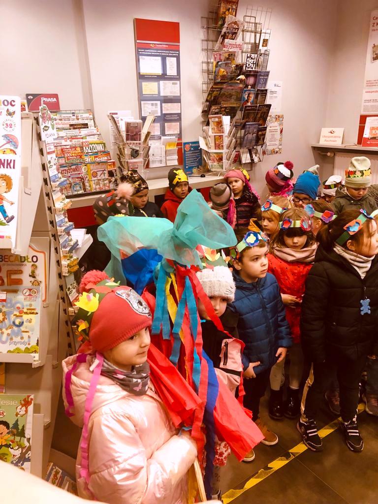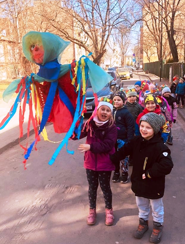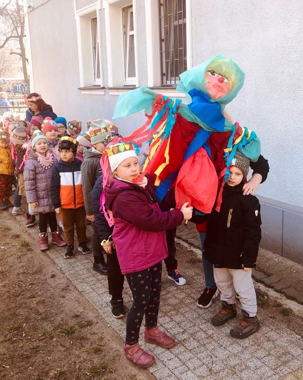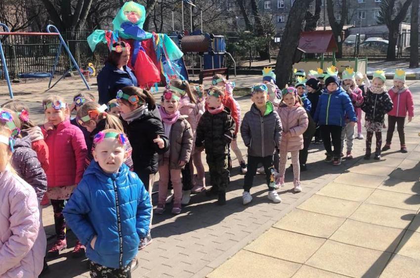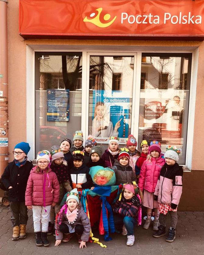 21 marca powitaliśmy pierwszy dzień kalendarzowej wiosny. W tygodniu poprzedzającym to wydarzenie 6 - latki przygotowały Marzannę. W poniedziałek wszystkie przedszkolaki spotkały się w ogrodzie i wspólnie zaśpiewały piosenki o wiośnie. Po okrzykach ,,Precz zimo zła" dzieci z grupy III i IV zaniosły Marzannę na pocztę. Na poczcie powitała nas pani Karolina. Pani asystentka zważyła kukłę, pomogła wypełnić odpowiedni druk i przyjęła Marzannę obiecując przedszkolakom, że na pewno wkrótce do Polski zawita wiosna. Wszystkich zainteresowanych powitaniem przez dzieci astronomicznego dnia wiosny zapraszamy do obejrzenia zdjęć.