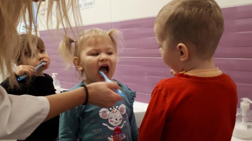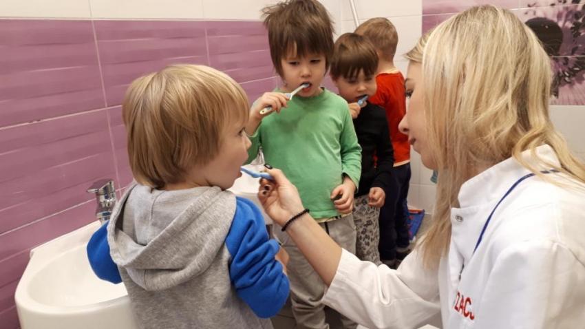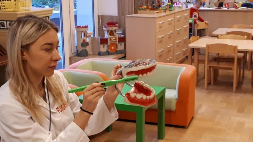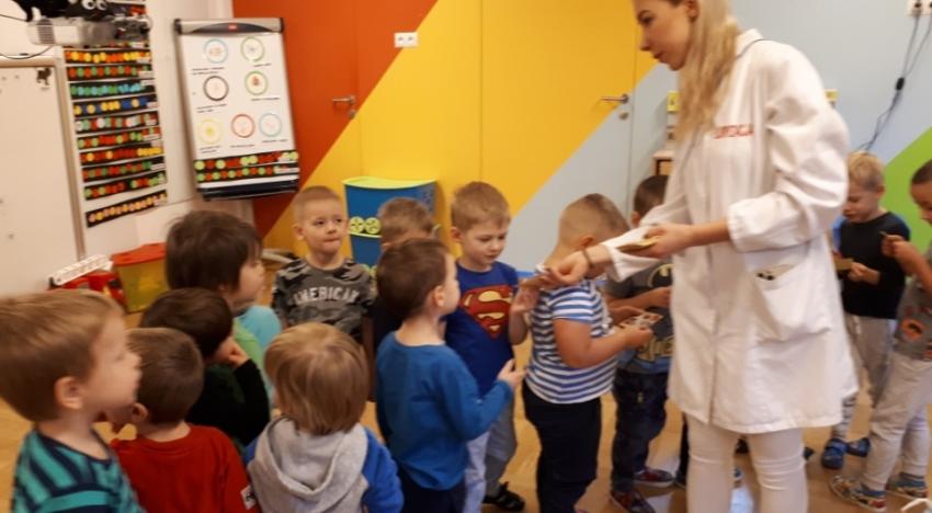 Na zakończenie spotkania wszyscy otrzymali pamiątkowe naklejki, a chętne przedszkolaki uczestniczyły w zabiegu fluoryzacji.
