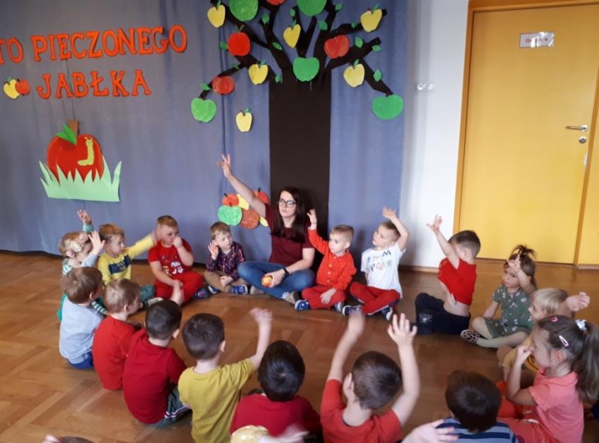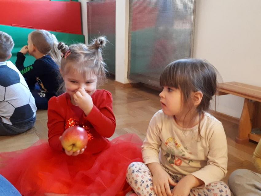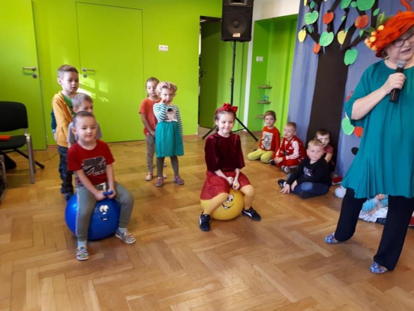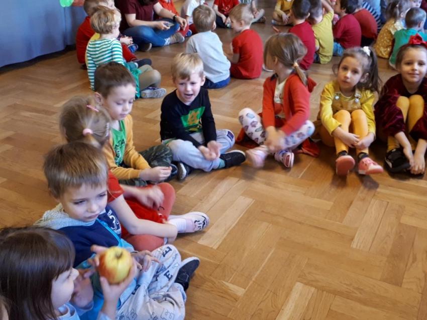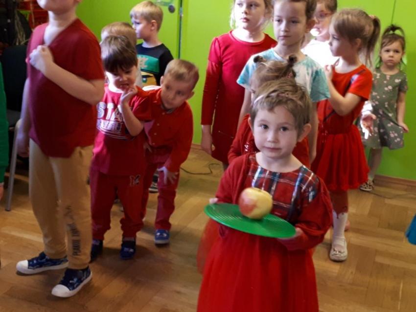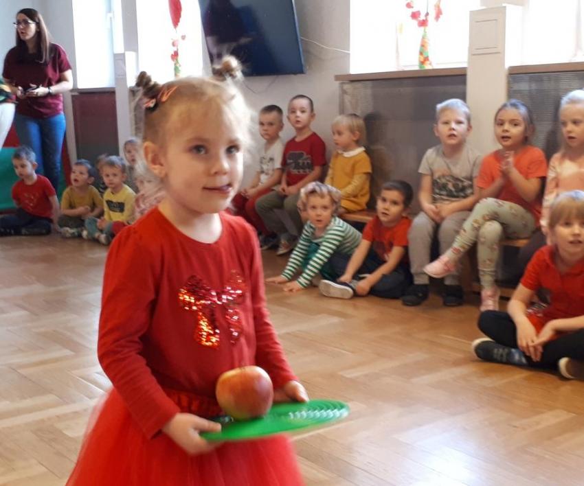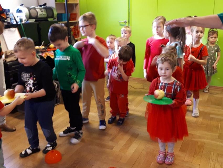21 listopada odbył się ,,Bal Pieczonego Jabłka". Podczas wspólnej zabawy, pod kierunkiem niezastąpionej Pani Grażynki i Pana Andrzeja, przedszkolaki miały okazje poznać melodie znanych piosenek np. ,,Jabłuszko pełne snów". Najmłodszym dzieciom dużo radości sprawiła zabawa w kółeczkach przy piosence ,,Małe czerwone jabłuszko". Było bardzo różnorodnie i ciekawie - nie zabrakło szaleństwa przy muzyce, a także małej rywalizacji sportowej.