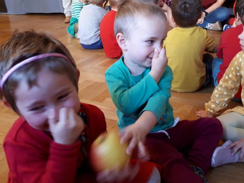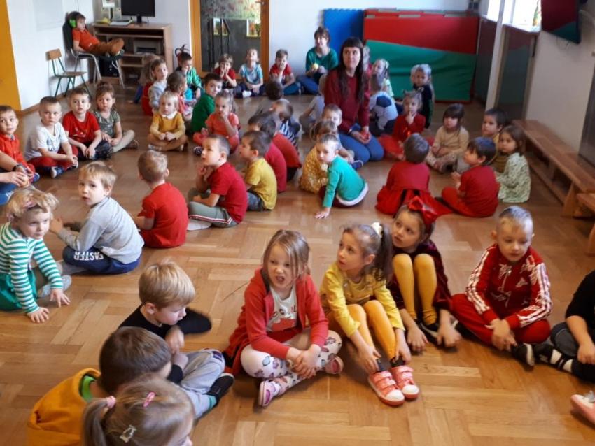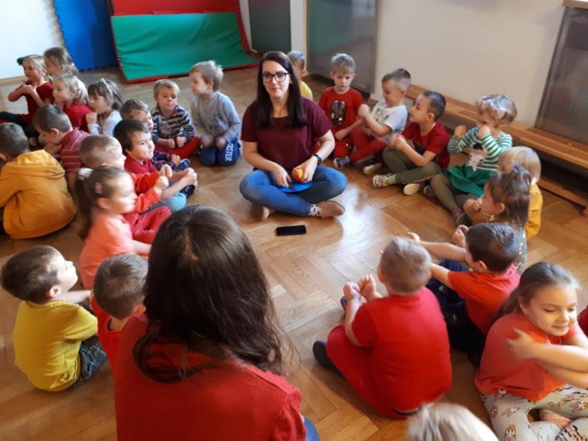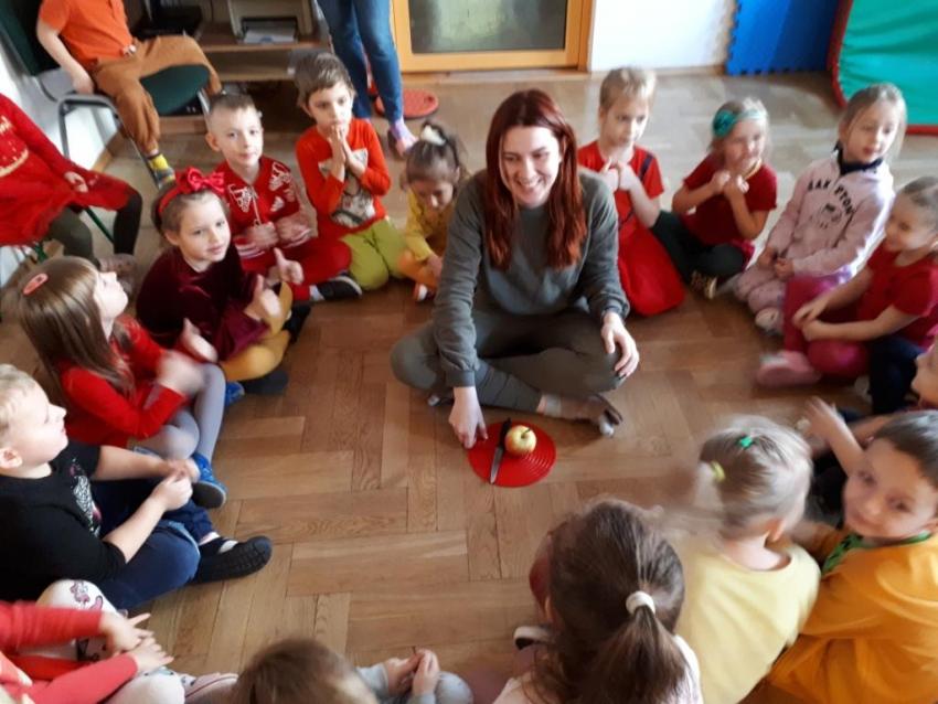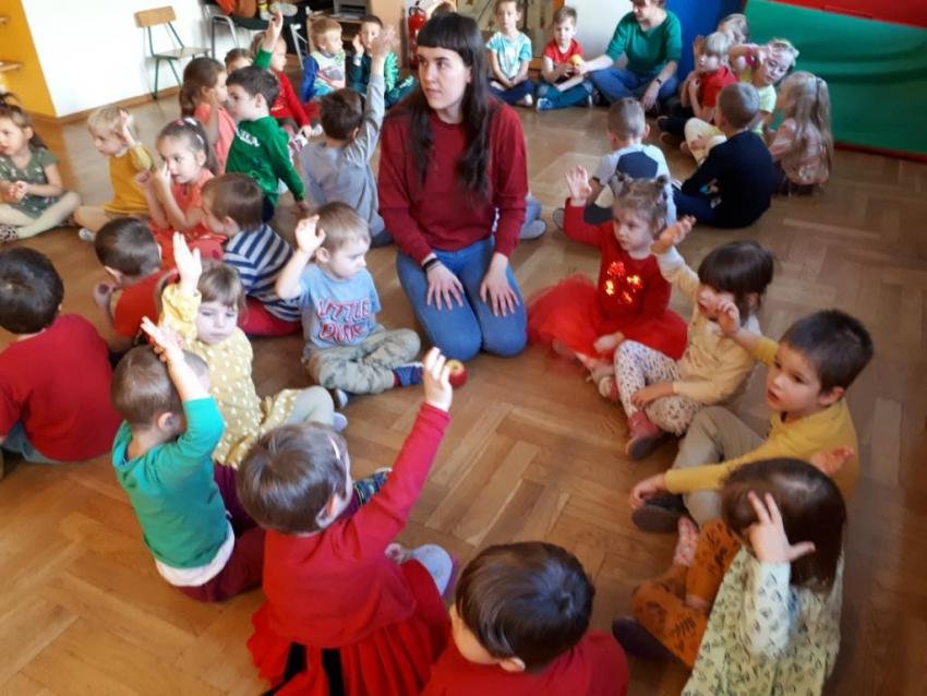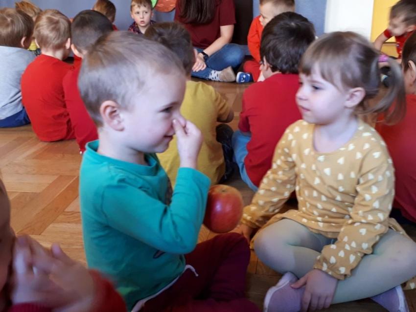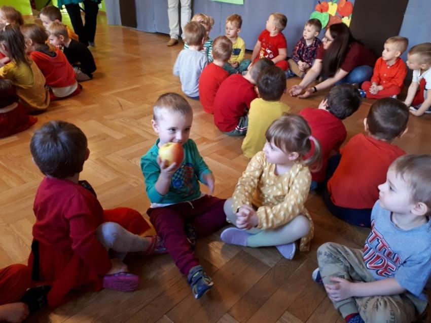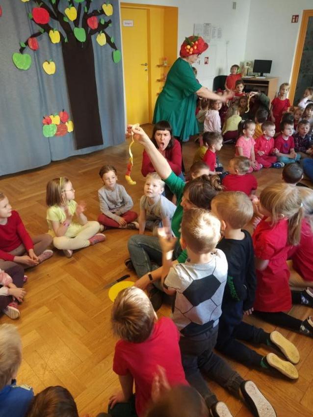 21 listopada odbył się ,,Bal Pieczonego Jabłka". Podczas wspólnej zabawy, pod kierunkiem niezastąpionej Pani Grażynki i Pana Andrzeja, przedszkolaki miały okazje poznać melodie znanych piosenek np. ,,Jabłuszko pełne snów". Najmłodszym dzieciom dużo radości sprawiła zabawa w kółeczkach przy piosence ,,Małe czerwone jabłuszko". Było bardzo różnorodnie i ciekawie - nie zabrakło szaleństwa przy muzyce, a także małej rywalizacji sportowej.
