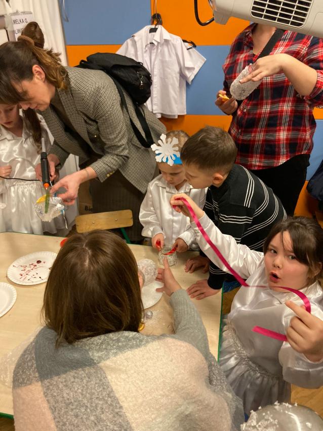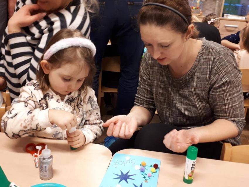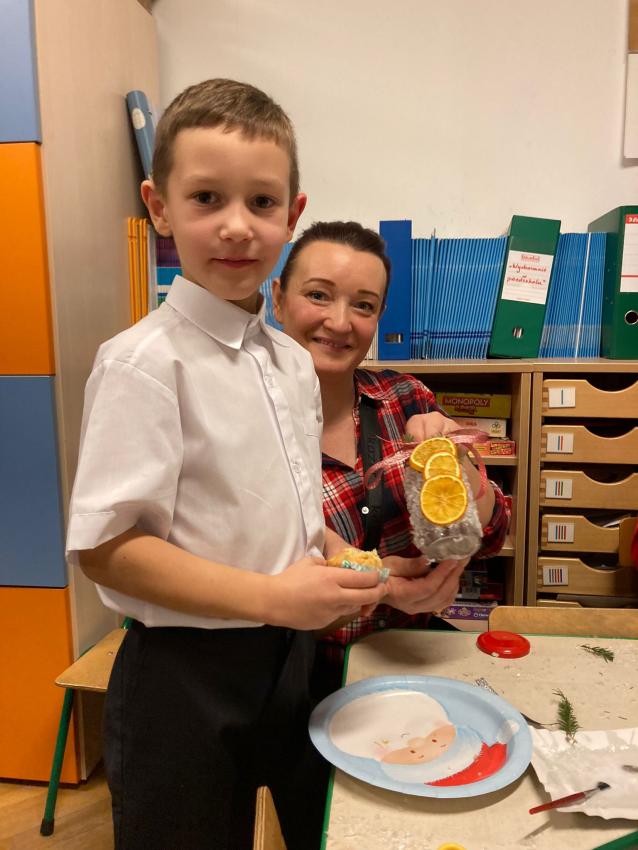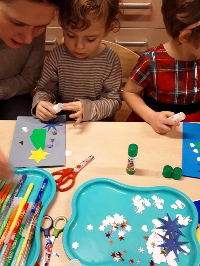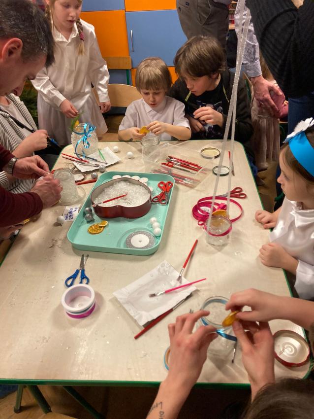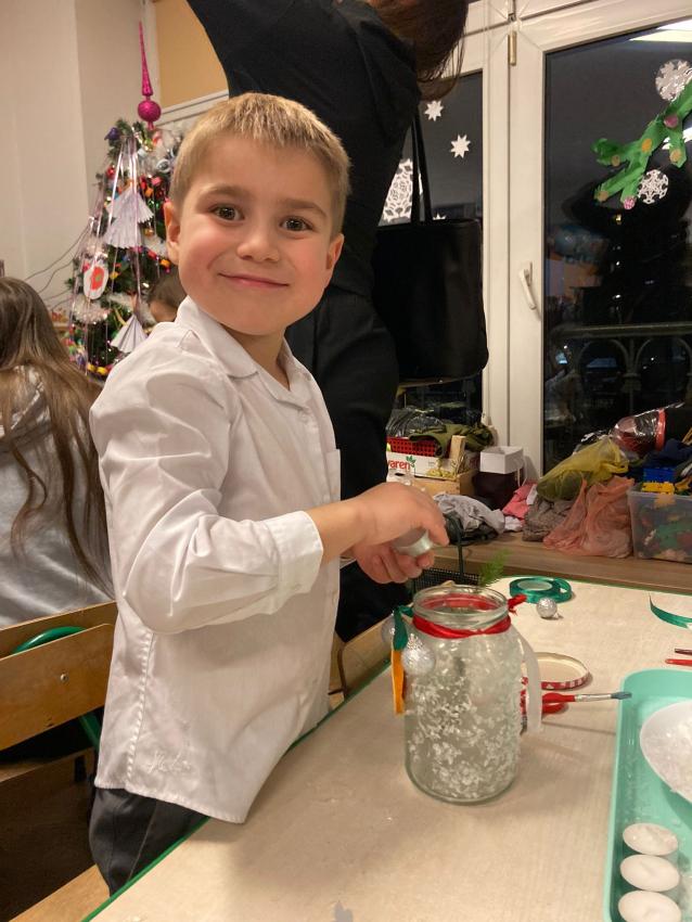 W dniach poprzedzających święta Bożego Narodzenia odbyły się w naszym przedszkolu spotkania z udziałem zaproszonych gości. Przedszkolaki ze starszych grup zaprezentowały krótkie występy artystyczne w postaci inscenizacji, prezentacji wierszy o bożonarodzeniowej tematyce oraz wspólnego śpiewania tradycyjnych kolęd. Duże wzruszenie towarzyszyło rodzicom podczas oglądania nastrojowego tańca ze światełkami. W młodszych grupach spotkanie z rodzicami miało charakter zabawy twórczej. Goście, wspólnie ze swoimi pociechami, wykonywali lampiony oraz kartki świąteczne. Podczas wspólnej pracy wszyscy wykazywali się dużym zaangażowaniem. Był to bardzo miły i wyjątkowy czas.