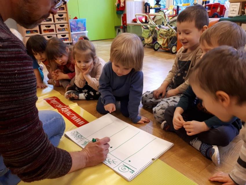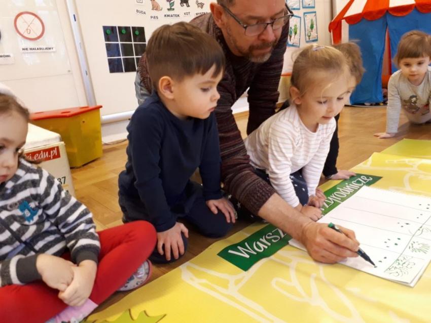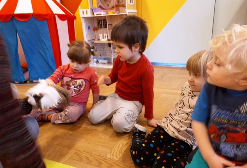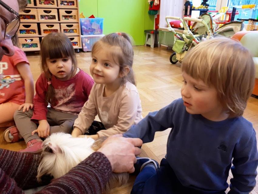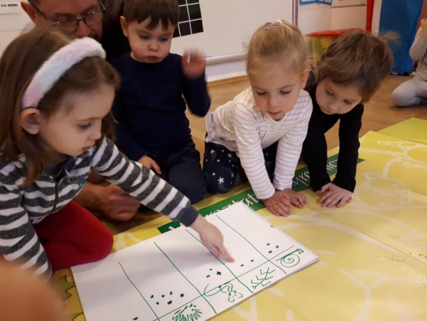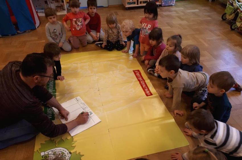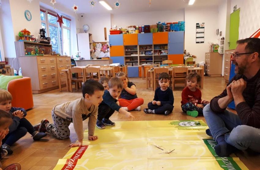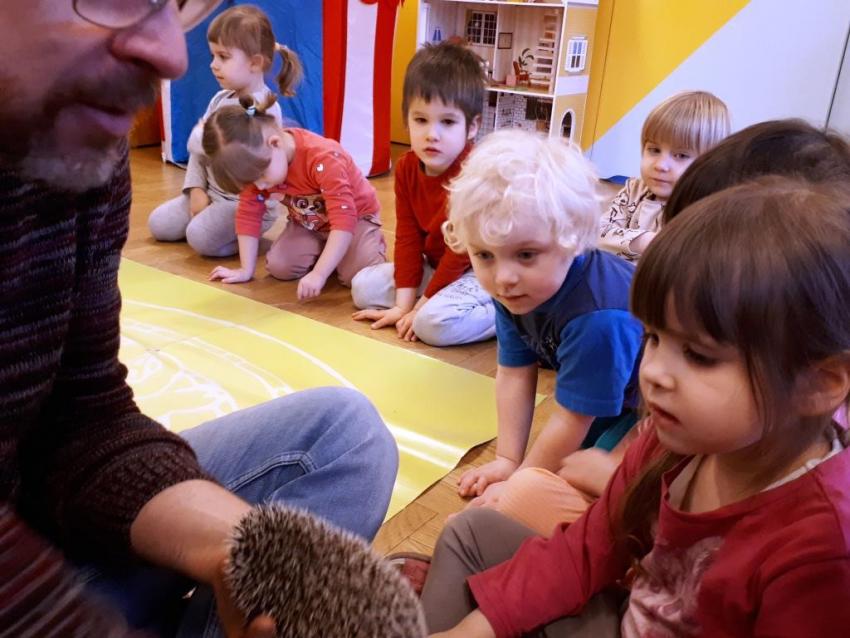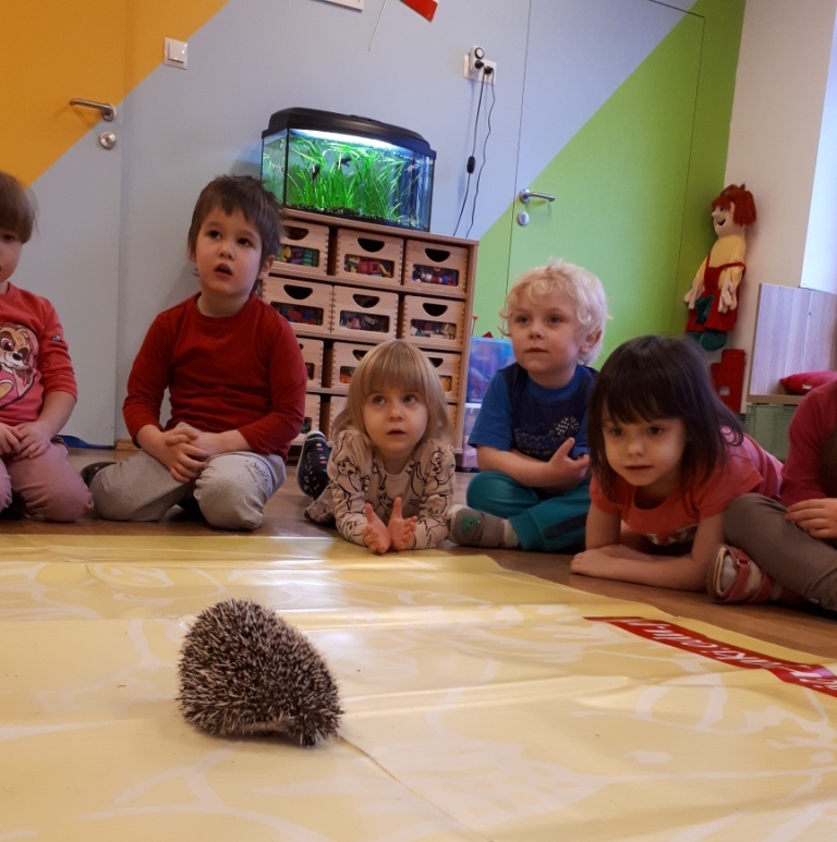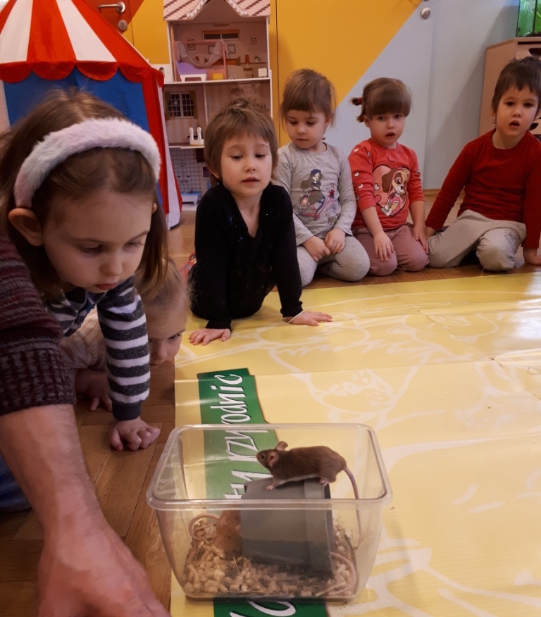 24 stycznia dzieci ze wszystkich grup uczestniczyły w warsztatach przyrodniczych pt. ,,Egzotyczne czy domowe". Warsztaty poprowadził pan Roman Person z Perr - Zoo. Przedszkolaki miały okazję bezpośrednio obserwować ślimaki afrykańskie, patyczaki, jeża pigmejskiego, myszki oraz długowłosą świnkę morską. Umiejętność opowiadania przez pana Romana o ciekawostkach przyrodniczych pobudzała dzieci do stawiania pytań o zwierzętach. Na koniec spotkania każde dziecko miało okazję wskazania zwierzątka, które chętnie by przyjęło pod swój dach.