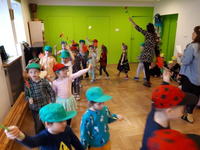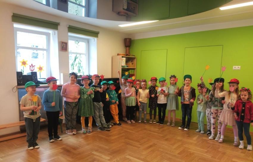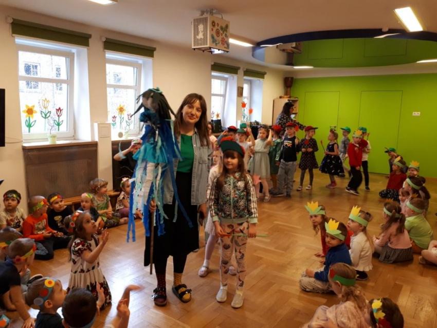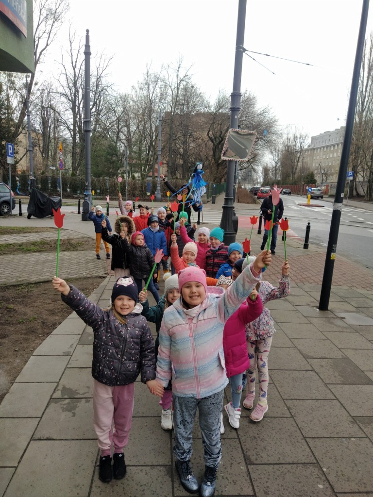 Z okazji I dnia wiosny, w myśl poznanej na zajęciach rytmiki piosenki ,,Precz zimo zła" wszystkie przedszkolaki uczestniczyły w tradycyjnym żegnaniu zimy i witaniu pierwszego dnia wiosny. Dzieci z trzeciej grupy wykonały kukłę Marzanny i zaprezentowały ją młodszym kolegom. Starszaki wykonały układ taneczny do piosenki ,,Wiosna" i udały się na pocztę, by wysłać Marzannę na Biegun Północny! To symboliczne pożegnanie się z zimą zwieńczyło nasze obchody tego dnia, w którym wspólnie śpiewaliśmy piosenki i witaliśmy nową porę roku.