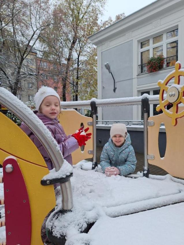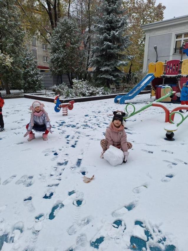 Nadszedł czas na zimowe zabawy w ogrodzie. Było lepienie bałwana, toczenie kul i szukanie lodu. Dzieci badały właściwości śniegu i lodu. Zauważyły, że pod wpływem ciepła zmienia się ich stan skupienia.