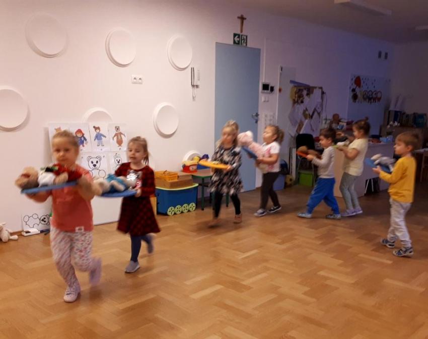 W tym wesołym dniu na dzieci i ich przytulanki czekało wiele atrakcji. Przedszkolaki zostały zaproszone do wspólnej zabawy ze swoimi misiami, poznały historię ich święta, wysłuchały utwór klasyki literatury dziecięcej - wiersz Cz. Janczarskiego pt. ,,Naprawimy misia" oraz bawiły się do znanych misiowych przebojów.