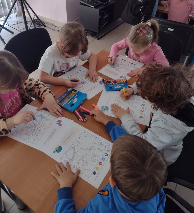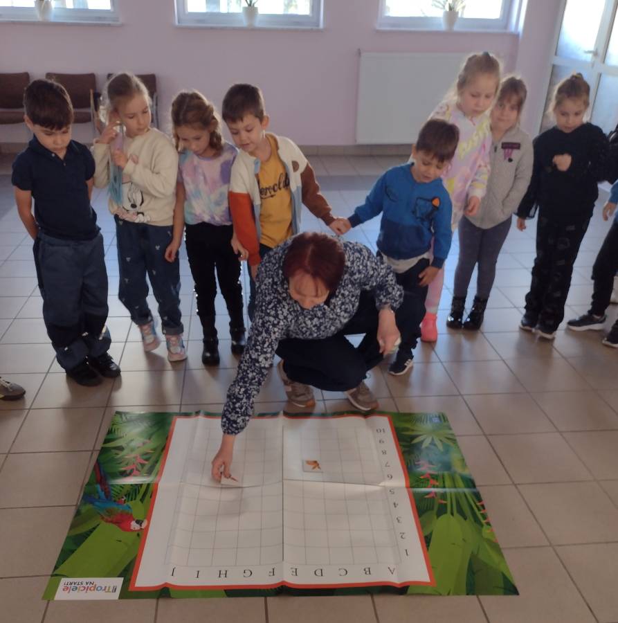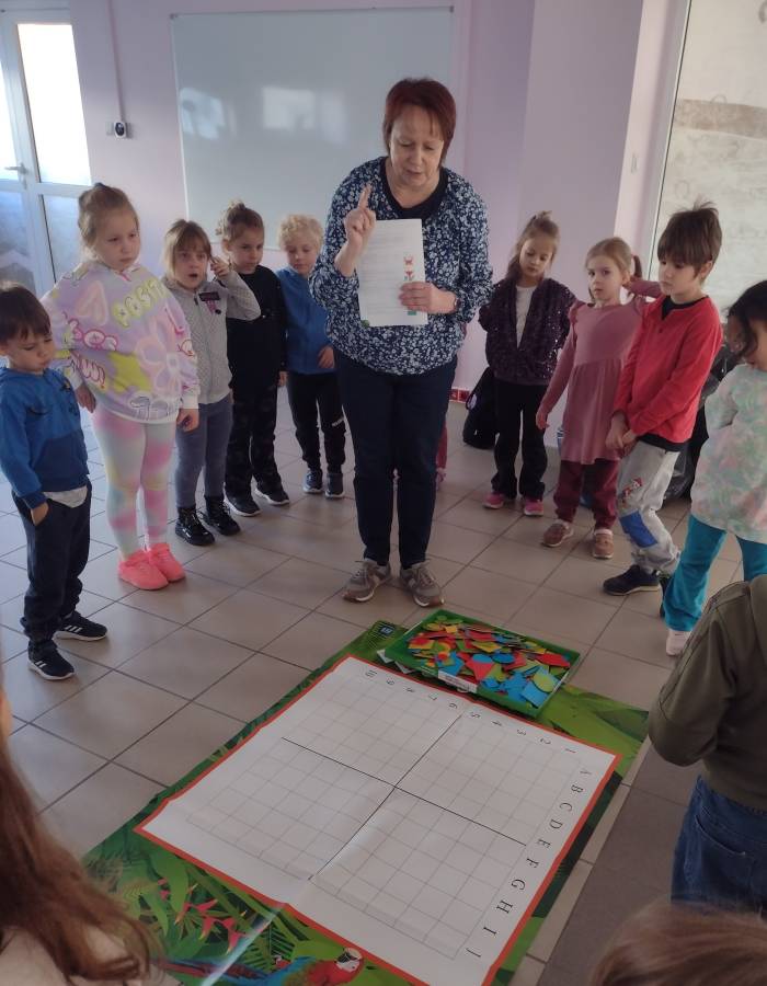 i kodowaniu. Na zajęciach wykorzystano wiele aktywności m.in. teatrzyk Kamishibai, bajki, zabawy matematyczne wprowadzające elementy kodowania, puzzle, które rozwijały logiczne myślenie, umiejętność planowania i współpracy w zespole.