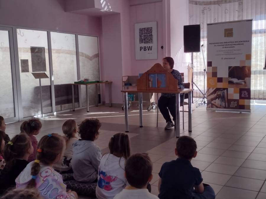 Grupa IV odwiedziła Pedagogiczną Bibliotekę Wojewódzką im. KEN przy. ul. Gocławskiej 4. Przedszkolaki wzięły udział w zajęciach edukacyjnych pt. O liczeniu, figurach geometrycznych
