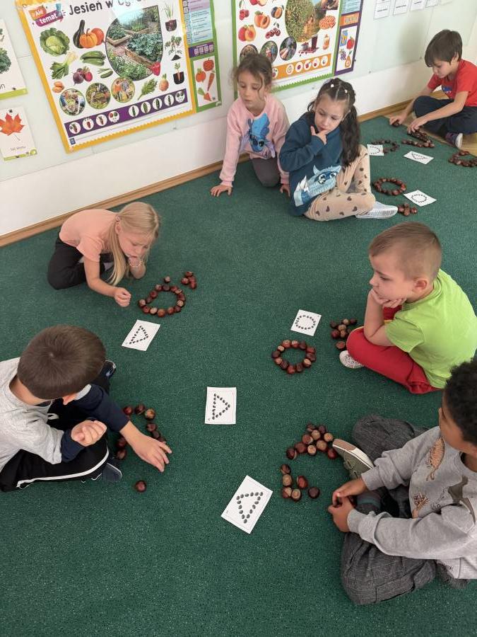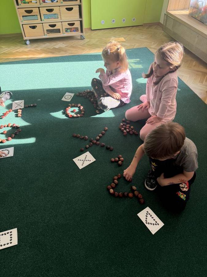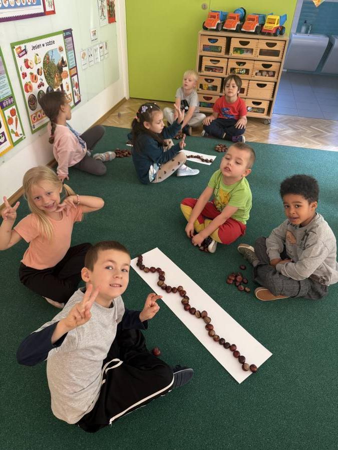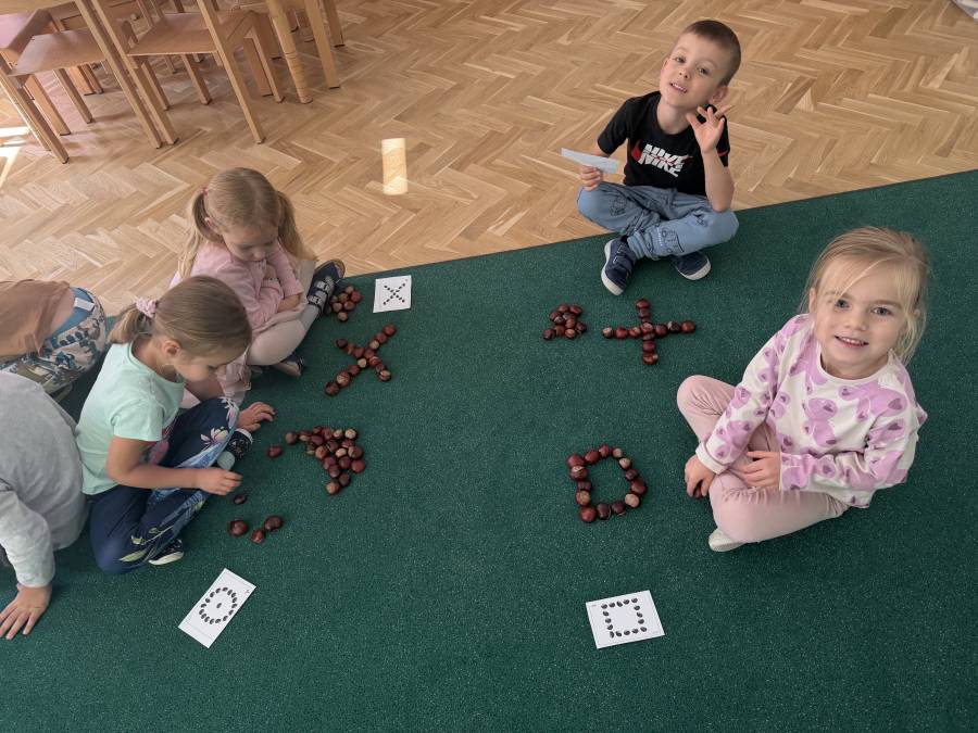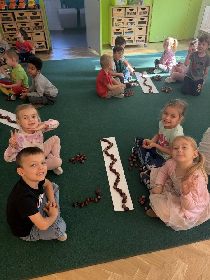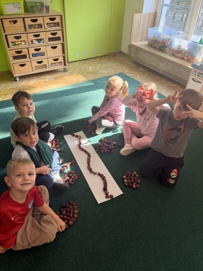 Przedszkolaki zdobywają wiedze i umiejętności poprzez różne aktywności :) Tym razem dzieci rozwijały sprawność manualną poprzez zabawy suchym śniegiem, zdobywały kompetencje matematyczne poprzez liczenie, układanie kompozycji z kasztanów, doskonaliły umiejętność współpracy w grupie, rozwijały empatię poprzez obchody Dnia Chłopaka :)