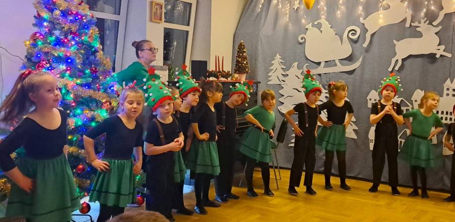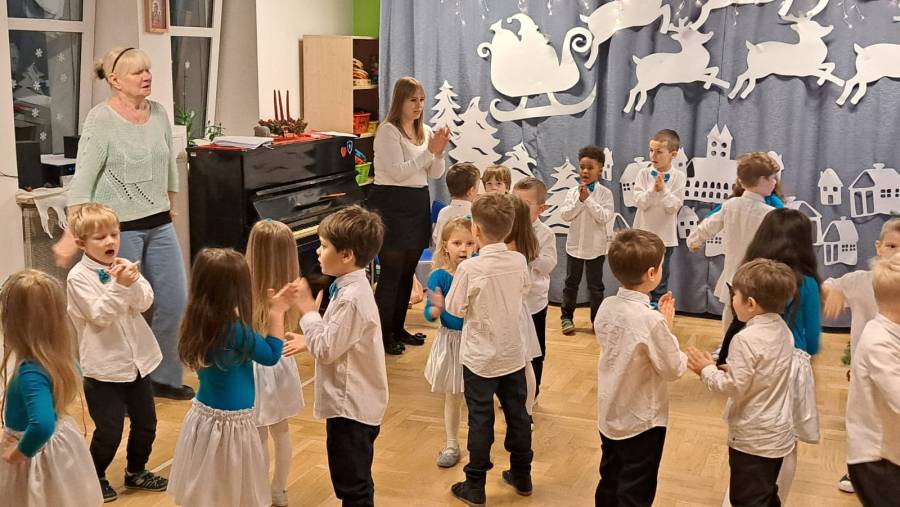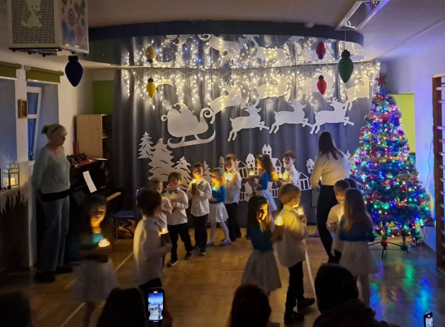 Świąteczna aura rozbłysnęła w przedszkolu zapachem, światłem muzyką i energią Przedszkolaków. Świąteczne koncerty pełne kolęd, pastorałek i piosenek o tematyce bożonarodzeniowej, wprowadziły wszystkich w magiczny czas nadchodzących świąt, pełen uśmiechu, wspólnego kolędowania i ciepłej, rodzinnej atmosfery. Pani Małgorzata Piesiewicz Dyrektor Przedszkola nr 171 oraz nasz specjalny gość Pani Gabriela Szustek Burmistrz Dzielnicy Praga-Północ m.st. Warszawy pogratulowały i podziękowały małym Artystom i Nauczycielom za piękne występy oraz życzyły wszystkim Wesołych Świąt!!!