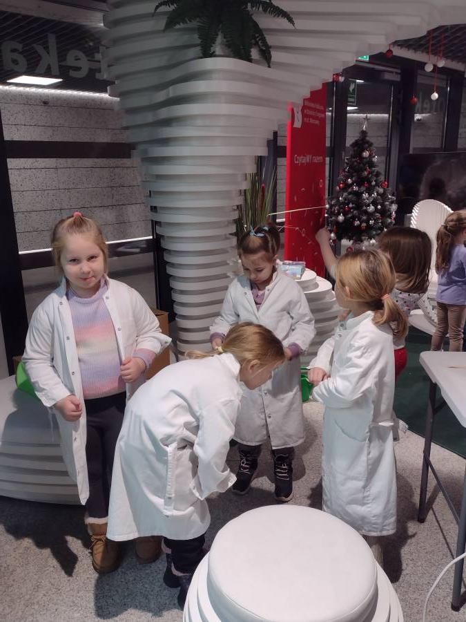 Przedszkolaki z Grupy IV miały okazję poczuć się jak naukowcy w laboratorium.