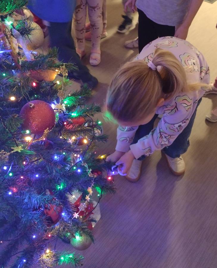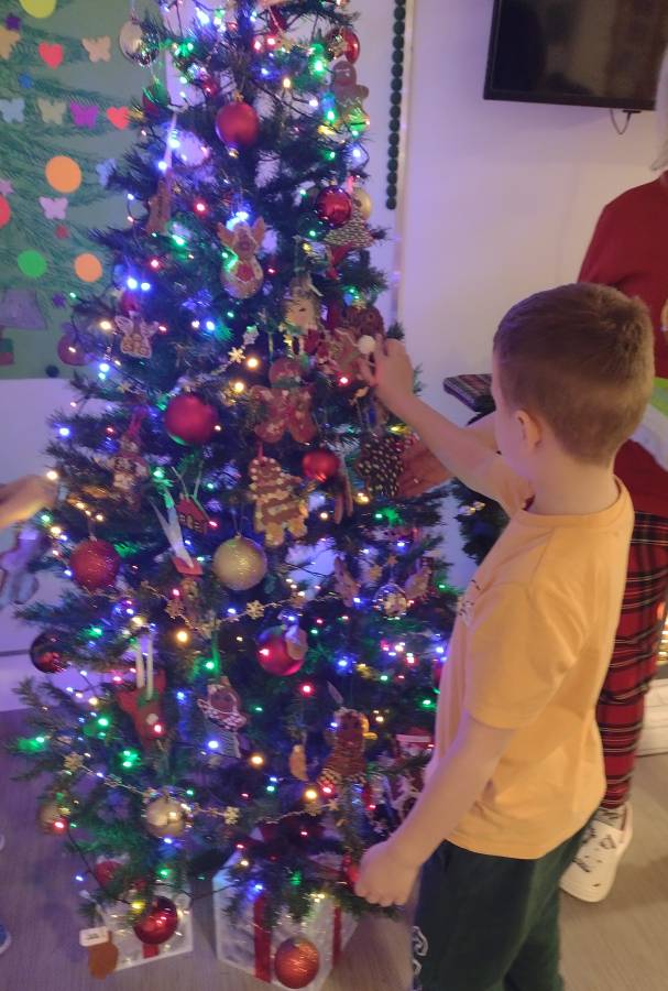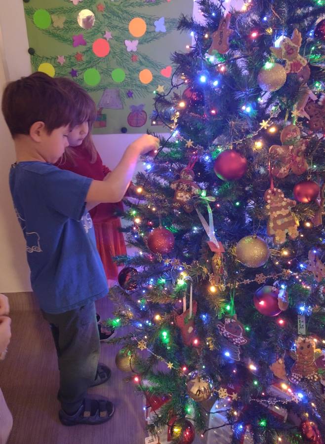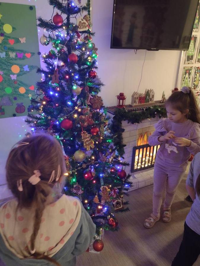 Nasza choinka coraz bardziej strojna. A, to za sprawą wspólnej twórczości Rodziców i Dzieci. Zawieszanie pierniczków na gałązkach choinki wywołało niesamowitą radość u Przedszkolaków. Każdy szukał jak najlepszego miejsca dla pachnącego ciasteczka. Zachwytów nie było końca, nad wszystkimi pierniczkami, które pojawiły się na choince. A, jaki zapach :)