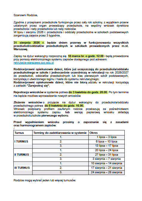 DYŻUR WAKACYJNY 2026