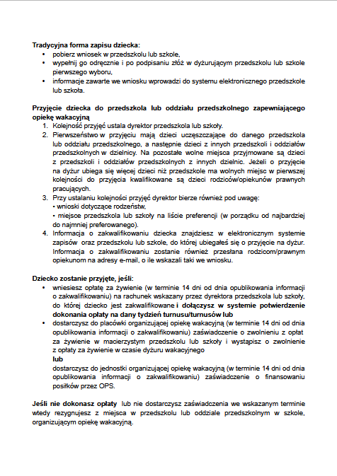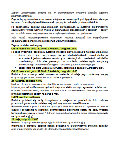 Harmonogram dyżuru wakacyjnego
