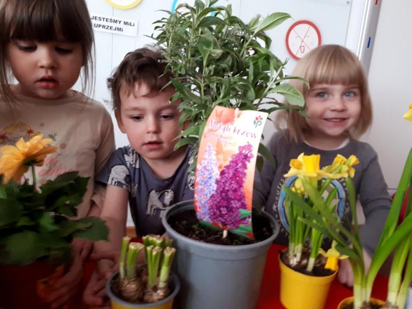 21 kwietnia 2023 r. obchodziliśmy Dzień Ziemi. Odbyły się zajęcia edukacyjne uświadamiające konieczność dbania o przyrodę. Przedszkolaki dowiedziały się, że dla dobra naszej planety należy sadzić drzewa i pielęgnować rośliny; dbać o przyrodę; oszczędzać wodę i prąd; segregować śmieci oraz ograniczać zużycie plastiku. W ramach obchodów Dnia Ziemi dzieci przyniosły do przedszkola ciekawe rośliny. Były budleje wabiące swoim zapachem kolorowe motyle, forsycje, hortensje i wiele innych. Z pomocą Pana Darka przedszkolaki zadbały o upiększenie ogrodu sadząc przyniesione krzewy, cebulki, wysiewając nasiona aksamitek.