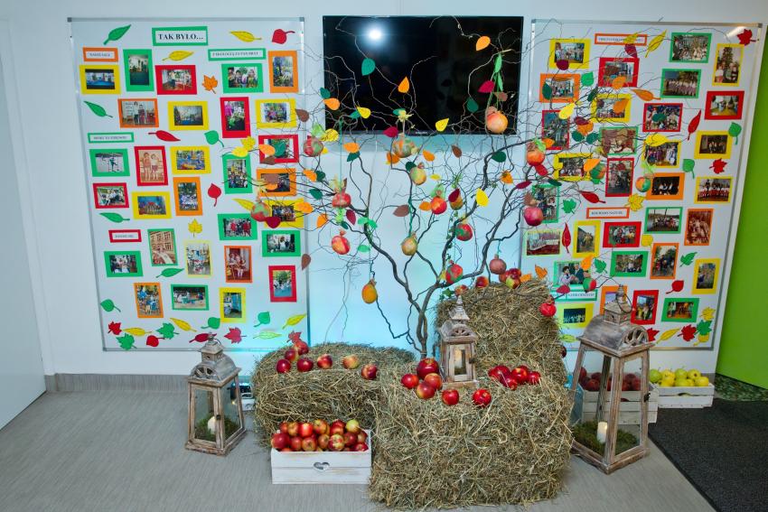 Następnie wychowankowie przedszkola, przejęci i radośni zaprosili do obejrzenia części artystycznej. Uroczystość rozpoczęła najstarsza grupa witając gości z przytupem i tanecznym krokiem przepięknym ?Mazurem?. Następnie wystąpiły dzieci z grupy drugiej prezentując taniec przy piosence ,,Idzie Jesień" oraz inscenizując wiersz D. Gellner ,,Jesienny pociąg". Maluszki zaprezentowały taniec przy piosence ,,Czerwone jabłuszko", a po nich dzieci z grupy pięciolatków inscenizację wiersza ,,Entliczek - pentliczek" i piosenkę ,,Owoców pełen kosz" z układem tanecznym. Po nich .wystąpiły dzieci z grupy starszaków prezentując tańce przy utworach ,,Paka z warzywniaka" oraz ,,Owocowy karnawał". Na zakończenie przedstawienia dzieci wraz z pracownikami przedszkola oraz zaproszonymi gośćmi odśpiewały Hymn przedszkola pt. ,,Wiele dni, wiele lat przeżyliśmy choć nas dzielił czas". Popłynęły łezki w niejednym oku.