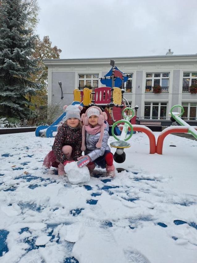 Nadszedł czas na zimowe zabawy w ogrodzie. Było lepienie bałwana, toczenie kul i szukanie lodu. Dzieci badały właściwości śniegu i lodu. Zauważyły, że pod wpływem ciepła zmienia się ich stan skupienia.